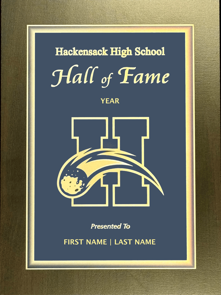 The Hackensack Athletic Hall of Fame has partnered with a local engraver to create special keepsakes that pay tribute to its esteemed members. We offer the ability to order and customize a plaque to hang on the wall of your home or office.We also offer a lapel pin to wear during special occasions. These items have been thoughtfully designed to serve as cherished mementos.